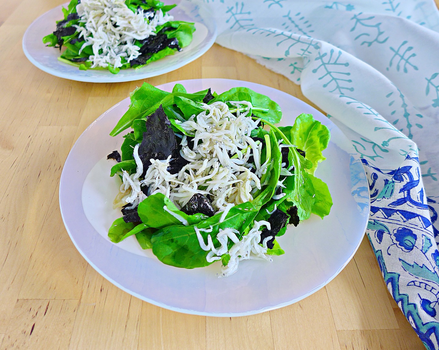 ヤマサHappy Recipe♪♪で9月のレシピ「ルッコラとしらすのコンフィの海苔サラダ」を公開中です。