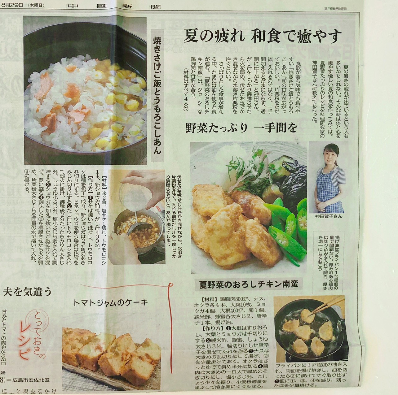 時事通信より疲れを癒やす夏の和食をご取材いただき、中日新聞、徳島新聞等、各紙掲載されました。